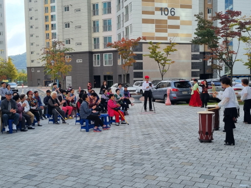 본 행사는 젊은 층보다 다소 문화공연을 접하기 어려운 노년층에 문화생활을 즐길수 있는 기회를 제공하기 위해 매년 상 ‧ 하반기 각 마을의 신청에 의해 실시하는 행사이다. 이번 행사는 코아루푸르나임 아파트 단지 내에서 진행 되었으며, 김천 하모니카동호회의 부드러운 하모니카 연주와 악기공연팀의 대중음악을 곁들인 신나는 난타공연, 분위기 있는 색소폰 연주로 점점 깊어가는 가을에 한껏 정취를 더했다.