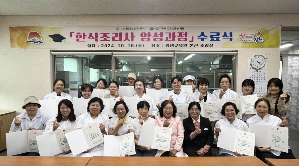 | 김천시평생교육원 여성새로일하기센터에서는 지난 10월 16일 교육원 본관 1층 조리실에서 한식조리사 양성과정 수료식을 끝으로 2024년 직업교육훈련 과정을 모두 마무리했다.