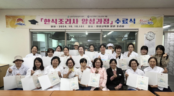 이번 훈련은 지난 8월 13일부터 10월 16일까지 총 128시간 동안 진행됐다. 추후 수료생들은 한식조리기능사 자격증을 취득해 학교, 요양센터, 어린이집 등 다양한 기업체에서 한식조리사로서 활동할 예정이다.