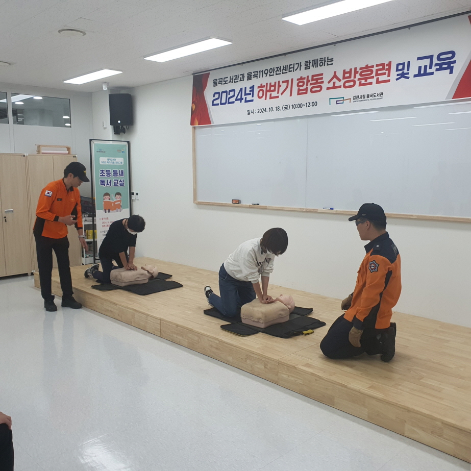 훈련에 참여한 율곡도서관 전 직원들은 화재 발생 시 인명 피해가 발생하지 않도록 대피 경로와 대피 방법을 숙지하고 화재 발생 초기 자체 대응 역량을 강화해 신속하게 초동 진화할 수 있도록 소방시설 사용법을 익혔다. 특히, 율곡119안전센터 소방대원들의 소화기 사용법과 심폐소생술(CPR) 일대일 교육을 통해 긴급 재난 상황 시 정확한 대처법을 배웠다.