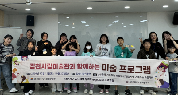 | 김천시립미술관이 지난 10월 12일, 20일 남산지구 도시재생 방과 후 학습도우미와 함께한 미술교육프로그램을 성료했다고 21일 밝혔다.