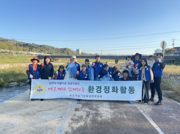 | 김천시 남면 바르게살기위원회(위원장 박미애)는 지난 10월 23일 19명의 바르게살기위원회 회원들이 모여 율곡천 일대에 무단으로 버려진 쓰레기를 수(ㅂ거하는 환경정화 활동을 했다.