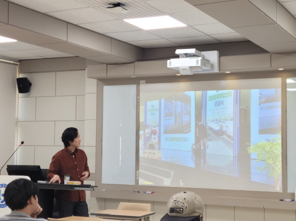 이번 기업인 초청 특강에서 에코브(주) 임성대 대표은 “경북 스마트 그린물류 규제자유특구 사업”의 김천 공영주차장을 활용한 도심형 말단배송 물류유통의 이해와 실무라는 내용으로 강의를 진행하였다.