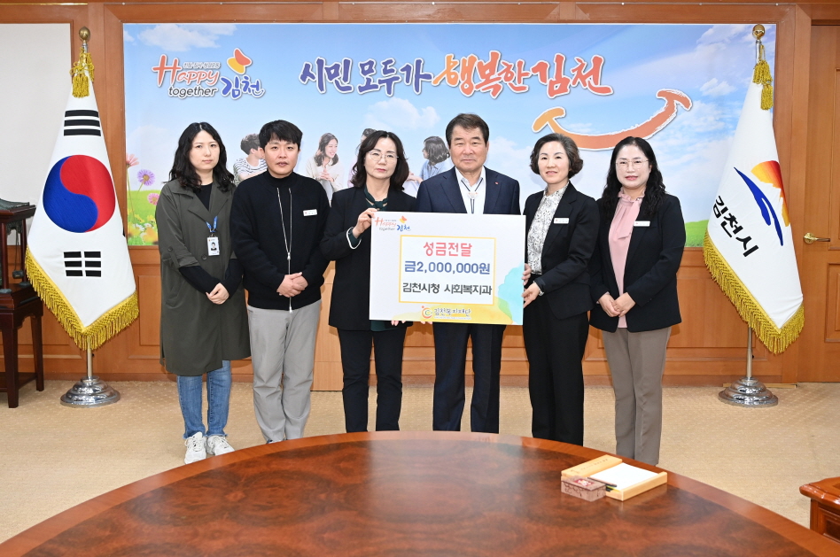 | 김천복지재단(이사장 김충섭)은 지난 10월 29일 김천시청 사회복지과(과장 손정애)직원들로부터 성금 200만원을 전달받았다고 밝혔다.