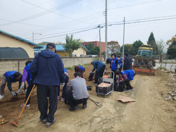 | 어모면 바르게살기운동협의회(회장 윤상분)에서는 11월 4일 행정복지센터 옆에 작약, 튤립, 코끼리 마늘 구근을 심으며 『어모면 단체 릴레이 꽃밭 조성』에 동참했다.