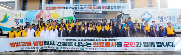 이번 봉사는 최근 의료대란으로 녹록지 않은 상황이 장기화하는 중에도, 경북의 의료여건을 개선하고자 하는 뜻과 의지를 담아, 도와 영양군, 지역 유수 대학병원들과 의료원 등 총 15개 기관이 출동했다.