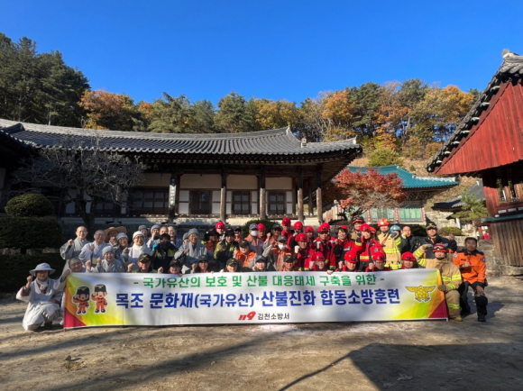 | 김천소방서(서장 안영호)는 11월 6일 오후 14시 청암사에서 문화재(국가유산) 보호 및 산불대응태세 구축을 위한 목조문화재 유관기관 합동소방훈련을 실시했다고 밝혔다.