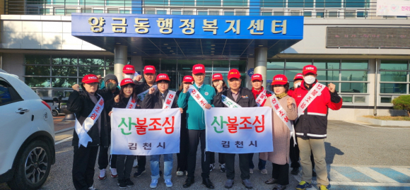 | 김천시 양금동행정복지센터(동장 진태술)는 지난 11월 8일 가을철 산불조심 기간(11월 1일~12월 31일)을 맞아 양금동 행정복지센터 회의실에서 산불결의대회 개최했다.