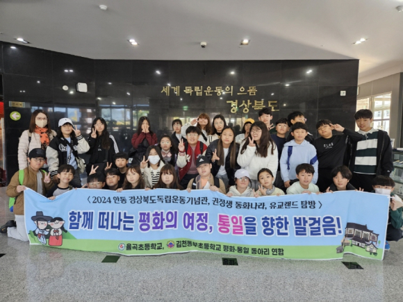 | 김천동부초등학교(교장 하헌택)와 율곡초등학교(교장 김형환)는 11월 9일 평화‧통일 동아리 학생 40여명을 대상으로‘평화‧통일 안동 탐방 체험학습’을 실시하며 안동을 다녀왔다.