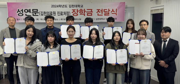 | ‘2024학년도 김천대학교 임상병리학과 장학금 전달식’이 11월 07일 제1보건과학관 세미나실(New Jerusalem)에서 열렸다고 11월 12일 밝혔다. 김천대학교 임상병리학과의 다양한 교내외 장학금(동문회장, 인천지부, 부산지부, 대전지부, 포항경주지부, 춘천지부, 경북대학교병원, 대구가톨릭대학교병원, 가이아 동아리, 조성규, 조유진, 교수 장학금, 태웅로직스 장학금, 성연문 장학금) 전달식은 매년 개최되어 왔다.