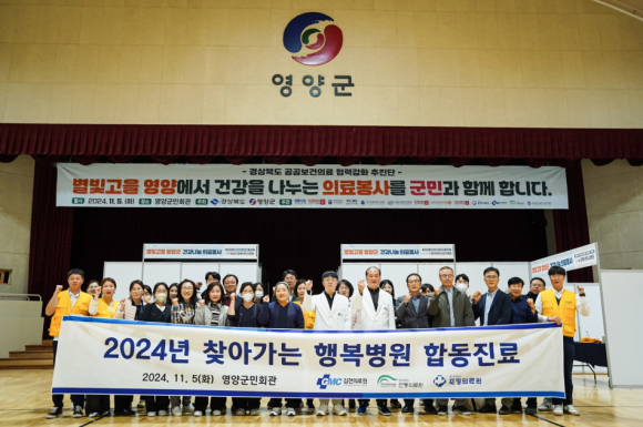 | 김천의료원은 지난 11월 5일 영양군 영양군민회관에서 ‘찾아가는 행복병원’ 합동 진료를 실시했다. 김천의료원을 포함한 총 10개 병원과 도의사회가 참여해 지역민들의 건강 증진과 의료 접근성 향상을 목표로 의료취약지 주민들에게 큰 도움을 주었다.