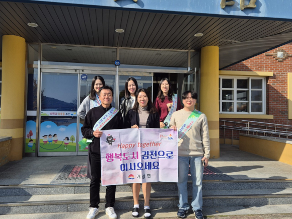 | 개령면행정복지센터(면장 임동환)는 지난 11월 13일 개령초등학교를 방문하여 학부모들과 선생님들을 대상으로 인구 전입 캠페인을 실시했다. 이번 캠페인은 김천시의 인구 증가를 목표로 진행됐다.