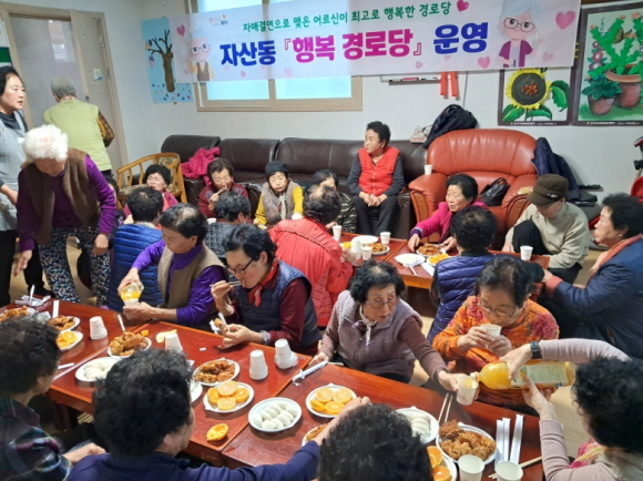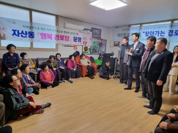 | 자산동 바르게살기운동(회장 이무형)과 번영회(회장 박지환)는 지난 11월 15일 자매결연을 맺고 있는 용두경로당을 찾아 재능기부와 맛있는 음식을 대접하며 즐거운 시간을 가졌다.