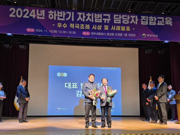 이번 공모에서 행정안전부는 전국 지방자치단체로부터 112건의 조례를 접수받아 이 중 5건을 분야별 대표 사례로 선정했다. 박선하 의원은 드론을 활용한 장애인 일자리 창출에 기여한 공로를 인정받아 감사패를 수상했다.