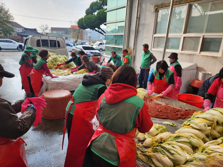 새마을 회원들은 아침 일찍부터 모여 배추를 수확하고, 고춧가루와 마늘, 생강 등 다양한 양념 재료를 준비했다. 회원들의 바쁘게 움직이는 손으로 100박스 분량의 김치를 완성했으며 개령면의 16개 마을에 있는 경로당, 독거노인 가구, 장애인 가구 등 어려운 이웃들에게 전달됐다.