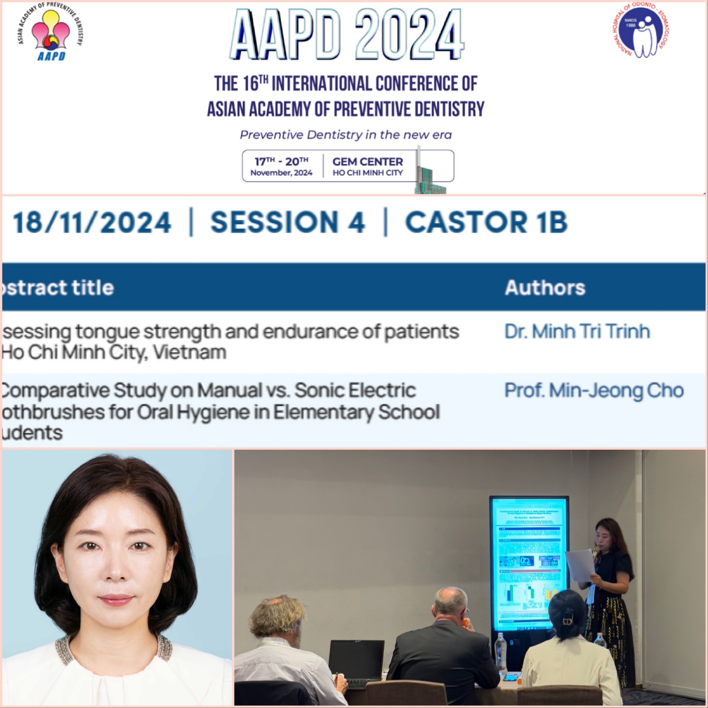 AAPD 2024는 베트남 호치민 시에서 개최되었으며, 연구 책임자인 조민정 교수를 대신하여 김천대학교 치위생학과 강원주 교수가 학술대회에 참석해 연구 결과를 발표했다. 강 교수는 AAPD의 가이드라인에 따라 e-포스터 형식으로 연구를 발표하였으며, 높은 평가를 받아 학술대회에서 주목을 받았다.