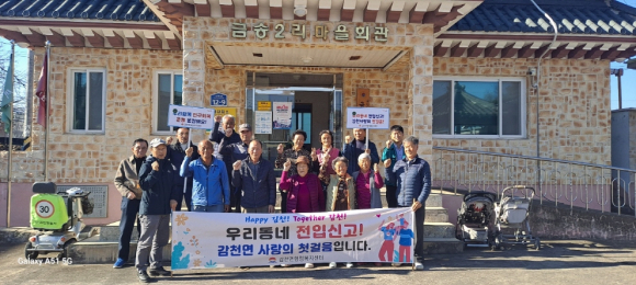 | 김천시 감천면행정복지센터는 지난 11월 22일 금송2리 마을을 찾아 인구회복 운동 동참을 다짐하는 등 우리동네 전입신고 캠페인 활동을 펼쳤다.