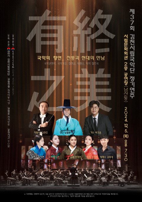 | 김천시 문화예술회관(관장 윤숙이)이 오는 12월 5일 오후 7시30분에 남산동 시립문회화관 공연장에서 시립국악단 제37회 정기연주회『유종지미(有終之美)』를 선보인다고 밝혔다.