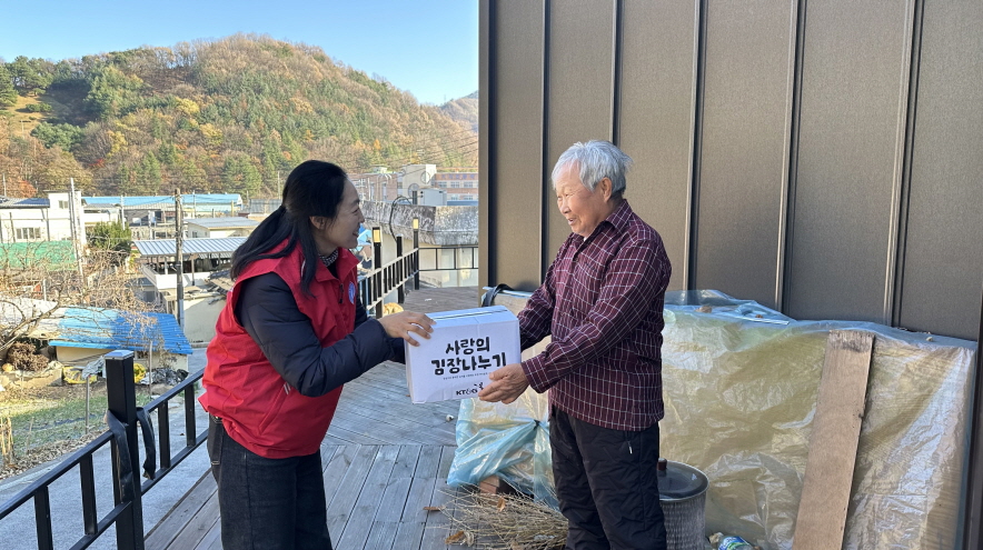 이번 김장 김치는 KT&G 김천공장이 후원하고 김천시 지역사회보장협의체와 김천부곡사회복지관이 함께 주관해 지역 내 사회복지 기관 및 단체, 읍면동 지역사회보장협의체가 참여했다. 대항면 보장협의체는 이날 추운 겨울 혼자 지내는 홀몸 어르신 10가구를 방문해 후원받은 김치를 전달하며, 따뜻한 정과 나눔을 나눴다.