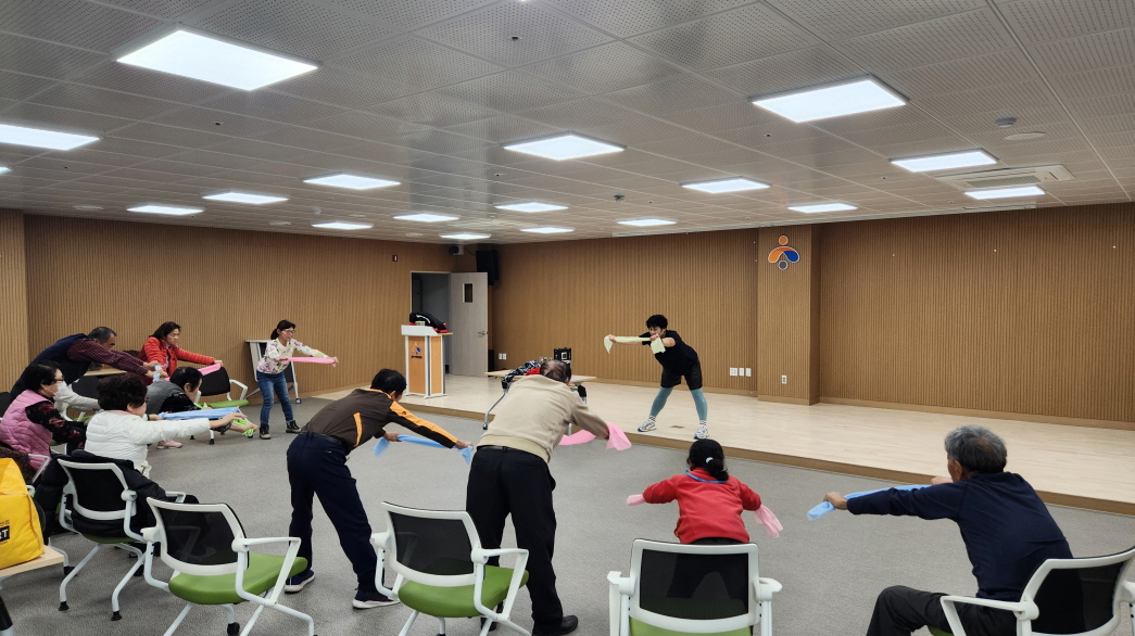 신정욱 전문강사와 함께 신나는 음악에 맞춰 건강체조 및 건강박수를 하며 체력을 증진시켰으며 목욕타올을 활용한 스트레칭과 근력 운동도 실시함으로써 참여자들이 체계적으로 신체를 관리할 수 있도록 도왔다.