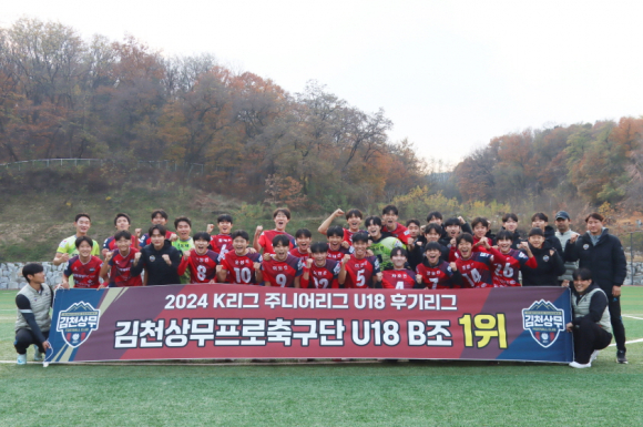 | 김천상무프로축구단(대표이사 배낙호) 유소년 선수단이 지난 11월 21일, U18의 K리그 주니어 마지막 경기를 끝으로 2024시즌을 마무리했다. 김천상무 유소년 선수단은 창단 4년 차인 2024년 각종 대회에서의 좋은 성적과 국가대표, 지역대표 선수 배출 등 괄목할 만한 성과를 이뤄내며 내년을 기대하게 했다.