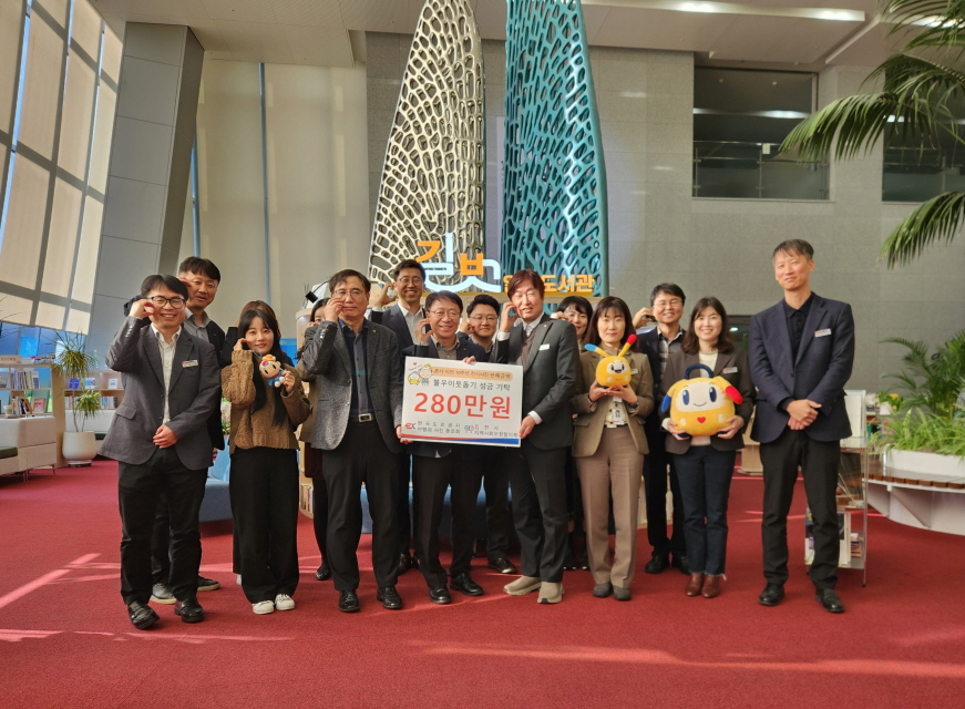 | 한국도로공사(사장 함진규)『여행과 사진』동호회에서 김천시 취약계층 지원에 필요한 복지기금 마련을 위한 ‘함께모아 행복금고’에 성금 280만원을 기탁하였다.