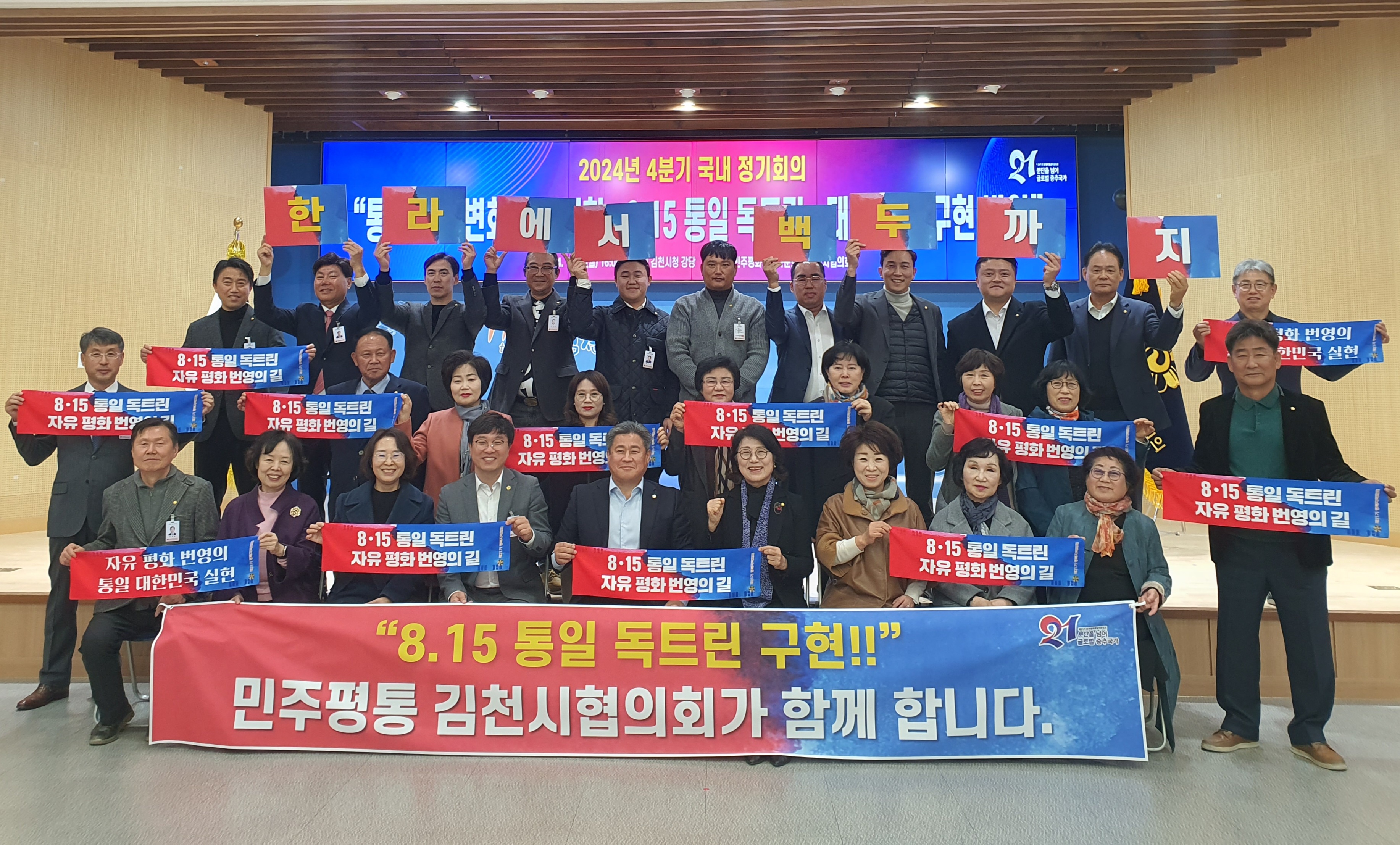 | 민주평화통일자문회의 김천시협의회는 12월 2일, 김천시청 강당에서 자문위원 35명이 참석한 가운데‘통일환경 변화를 고려한 <8.15 통일 독트린> 대내외적 구현방안’을 주제로‘2024년 4분기 정기회의를 개최했다.