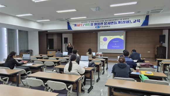 | 김천상공회의소(회장 안용우)는 지난 12월 5일 오후 1시 본 회의소4층 대회의실에서「챗GPT/뤼튼을 활용한 문서만들기(심화)」교육을 실시했다.