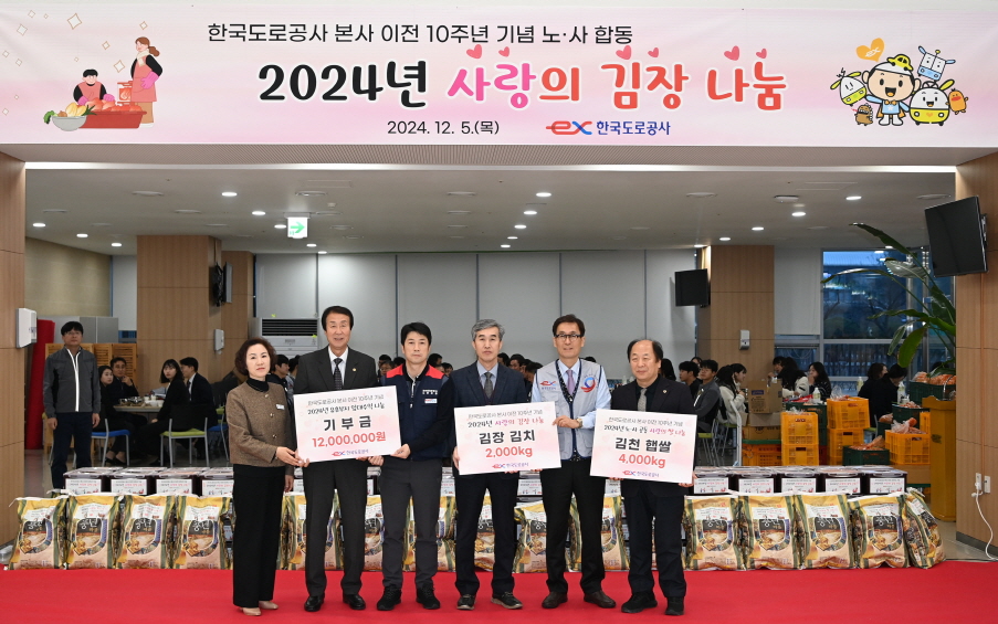 함진규 한국도로공사 사장은 “쌀과 김치는 한국인의 밥상에 없어서는 안될 소중한 먹거리인 만큼 이번 나눔을 통해 우리 이웃들에게 한국도로공사 직원들의 따뜻한 사랑과 정이 전해지길 바란다.”라며, “앞으로도 공공기관의 사회적 책임을 잊지 않고 지역사회 상생과 ESG경영의 실천을 위해 다양한 사회공헌활동을 펼쳐 나가겠다.”라고 말했다.