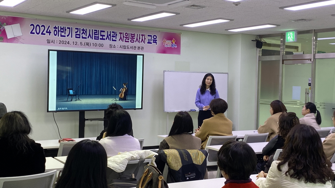 | 김천시립도서관(관장 이순영)에서는 지난 12월 5일 평화남산동 도서관 본관에서 2024년 하반기 도서관 자원봉사자 교육을 했다.