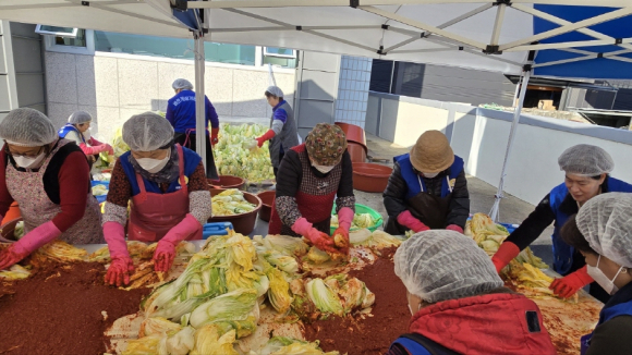 바르게살기운동김천시협의회 전정에 모인 40여 명의 여성회원들은 추운 날씨에도 소매를 걷어붙이고 김장에 나섰다. 첫째 날은 400포기의 배추를 절이고, 양념 재료를 다듬는 등 준비 작업을 했으며, 이튿날은 절인 배추를 양념에 버무려 상자에 담아 정성스럽게 포장했다.