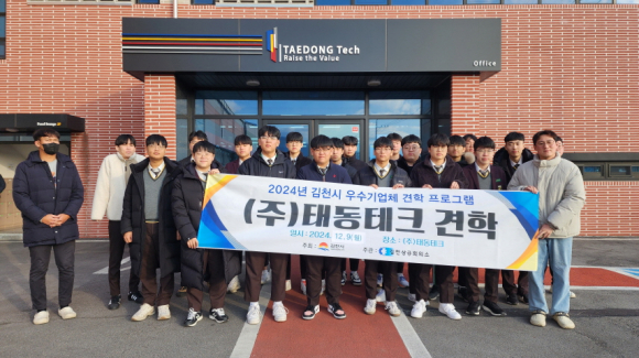 | 김천상공회의소(회장 안용우)는 지난 12월 9일 ‘2024년 김천시 우수기업체 견학 프로그램’ 9차 과정을 통해 금오공업고등학교 재학생을 대상으로 코오롱인더스트리(주) 김천1공장과 ㈜태동테크 김천공장을 견학했다.