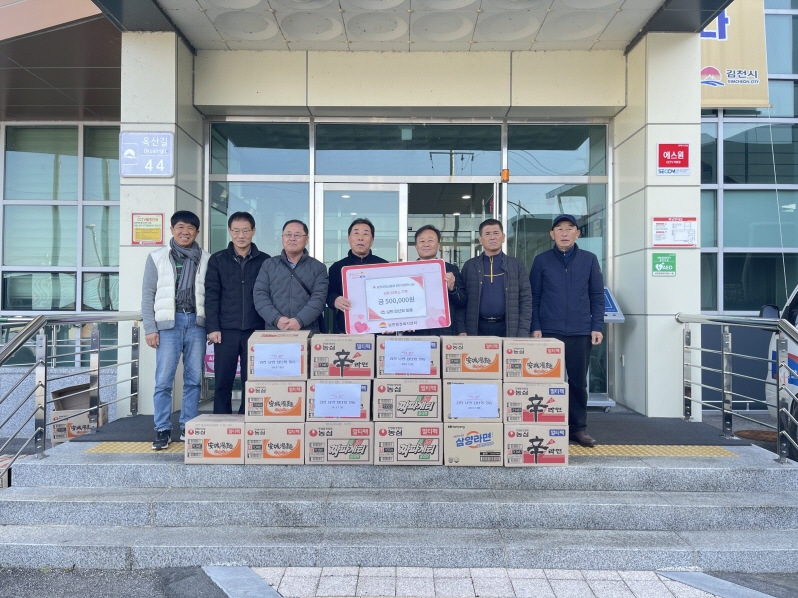 | 김천시 남면 청년회(회장 박세웅)는 지난 12월 9일 남면소재 경로당 및 마을회관 23개소에 이웃과 따뜻한 겨울나기를 실천하기 위해 어르신들이 드실 수 있는 라면(50만 원 상당)을 행정복지센터를 통해 물품을 전달했다.