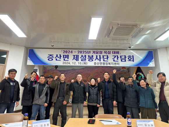 김상철 증산면장은 “제설봉사단의 건의사항을 반영하기 위해 적극 노력하겠으며, 어렵고 힘든 일에 적극 동참해 주신 증산면 제설봉사단에 깊은 감사의 마음을 전한다.”라고 말했다.