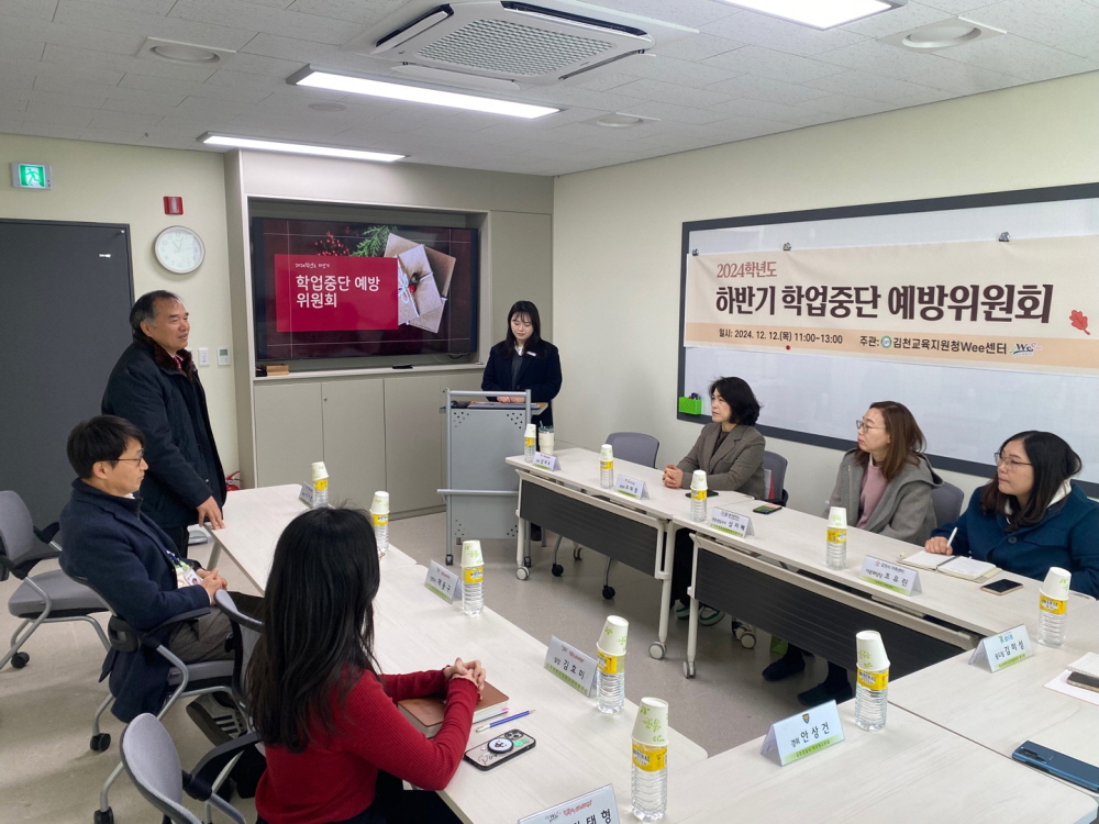 | 김천교육지원청(교육장 모태화)Wee센터는 12월 12일, 학업중단 예방 위원회를 개최했다. 학업중단 예방 위원회는 지역 내 유관 기관들이 모여 올해 추진된 학업중단 예방 사업의 성과를 공유하고, 내년도 활동 방향과 협력 방안을 논의하기 위해 마련되었다.
