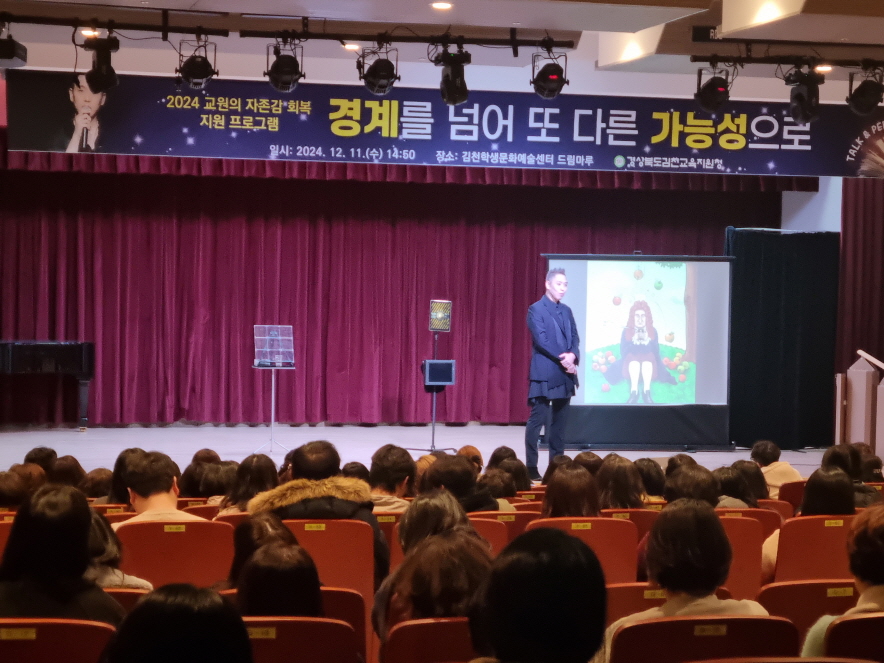 | 김천교육지원청(교육장 모태화)은 12월 11일 학생문화예술센터 드림마루에서 관내 유·초·중·고 교원 250여 명을 대상으로 ‘교원의 자존감 회복 지원 프로그램’을 운영하였다.