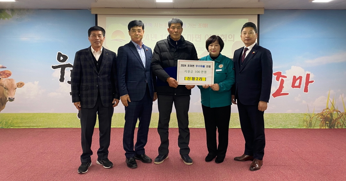 | 조마면(부면장 오연희)은 지난 12월 11일 제5회 조마면 우수마을로 선정된 신왕2리(이장 정수식) 마을에 우수마을 증서와 시상금을 전달했다.