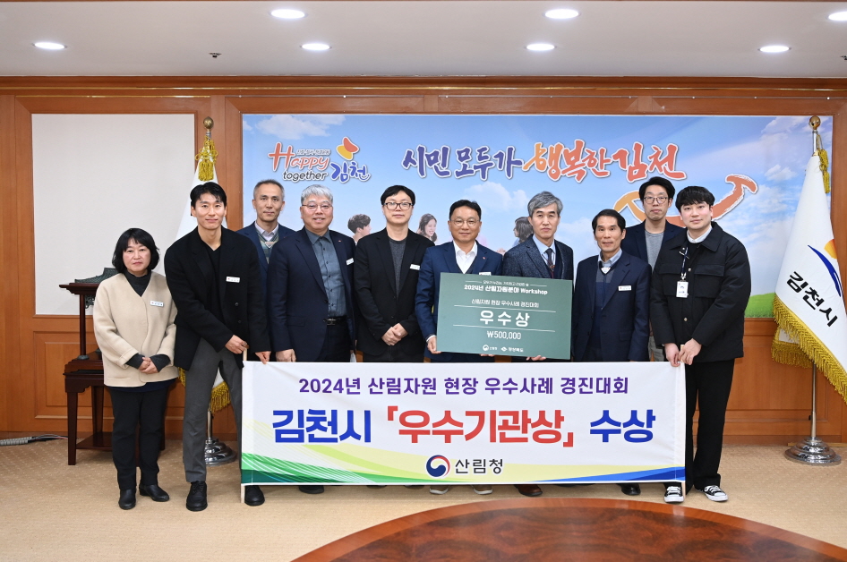 | 김천시는 지난 12월 12일 경주에서 열린 산림청 주관 2024년 산림자원 현장 우수사례 경진대회에서 우수기관상을 수상했다고 밝혔다.