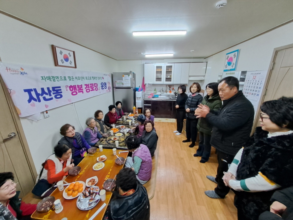 | 자산동 체육회(회장 임무식)는 12월 15일 자매결연을 맺고 있는 성안경로당을 찾아 마음 따뜻한 팥죽 나눔 행사를 가졌다.