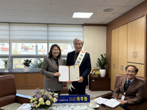 |  | | | ⓒ 김천내일신문 | | 이부화 대한노인회김천시지회장이 지난12월18일 국민건강보험공단 김천지사(지사장 민명자) 일일명예지사장으로 위촉돼 공단 업무 체험과 민원을 청취하며 지역주민과 소통하는 시간을 가졌다.