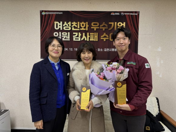 김천여성새로일하기센터, 12월 19일 여성친화 우수기업 임원에 감사패 수여