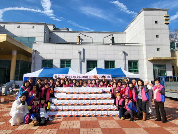 | 한국생활개선 김천시연합회(회장 임소록)는 지난 12월 20일 김천시농업기술센터에서 임원 및 회원 40여 명이 참여한 가운데 직접 김장을 담가서 읍면동 소외계층에 김치를 전달했다.