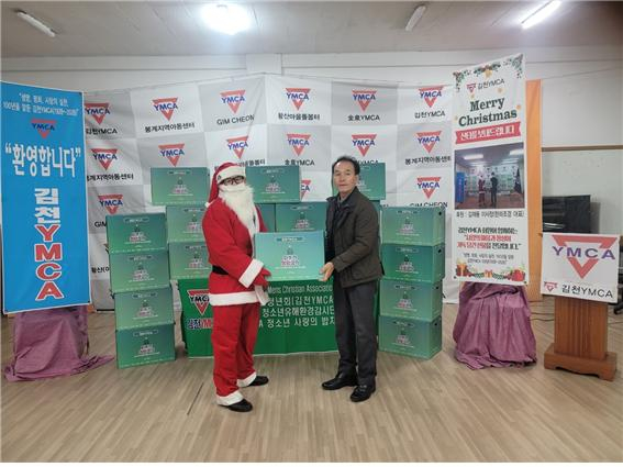 | 19회를 맞은 김천YMCA(이사장 김재용, 사무총장 이기락) 산타보내기 행사를 진행하였다. 올해는 김재용 이사장(한라조경(주) 대표), 박희대 증경이사장(박희대치과 원장), 와이즈멘 김천클럽(회장 최영택 정신건강의학과 원장), 이기락 사무총장 후원으로 따뜻한 마음을 담았다. 올 해는 한걸음 어린이집, 봉계지역아동센터, 푸른꿈지역아동센터, 부곡지역아동센터, 김천시장애인가족지원센터, 한걸음 최중증돌봄센터 등 직접 센터에 산타를 보내어 크리스마스의 사랑을 전하며 사랑과 용기를 가질 수 있도록 응원했다. 김재용 이사장은 “소망없고 나약한 자에게 관심과 사랑 그리고 낙심하지 않고, 체념하지 않고, 소망을 가지고 살아가고 더 큰 사랑이 전해질 수 있도록 앞으로도 많은 관심과 참여를 부탁한다”고 했다.