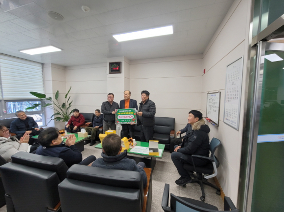 | 대덕면 수구초심회는 12월 21일 대덕면행정복지센터에서 저소득 계층 주민들의 따뜻한 겨울나기를 지원하기 위해 대덕면 노인회에 난방비 200만 원을 전달했다.
