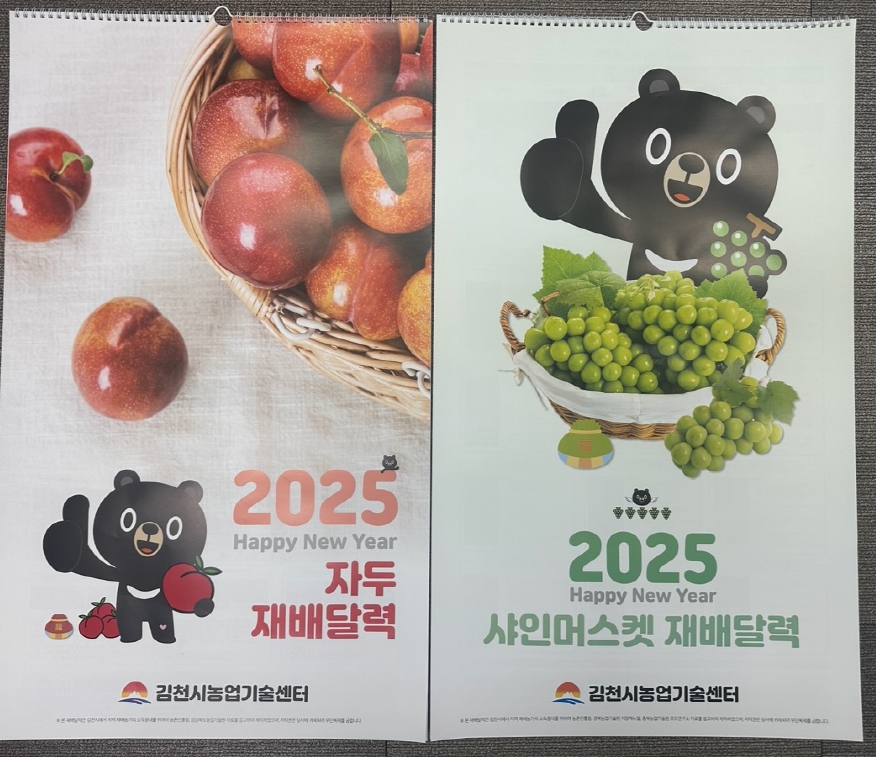 달력 주요 내용으로는 월별 주요 농작업 및 샤인머스캣·자두 재배방법, 시기별 주요 발생 병해충 관리 방법과 병해충 사진 수록, 생육 단계별 비배관리법 등 종합 관리 방법을 수록하여 농업인이 농업현장에 비치하여 시기별 필요한 정보를 손쉽게 접근할 수 있도록 벽걸이 달력의 형태로 제작되었다.