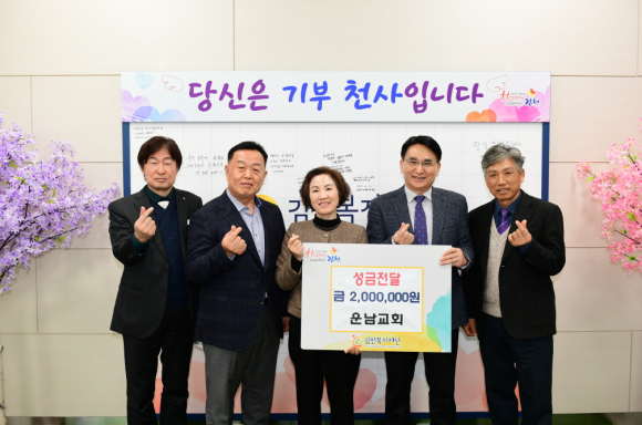 | 김천복지재단은 지난 12월 20일 운남교회(담임목사 장영운)로부터 성금 200만 원을 전달받았다고 밝혔다.