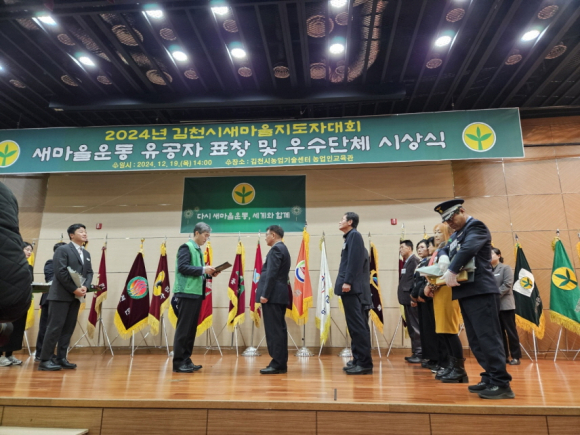 한편 이날 행사 중 진행된 새마을운동 유공자 및 우수단체 시상식에는 지역사회의 발전을 위해 헌신·봉사한 공로를 인정받아, 행정안전부장관 표창 1명, 경상북도지사 표창 8명, 김천시장 표창 31명, 국회의원 표창 1명, 김천시의회의장 표창 1명 등 총 31명의 유공자와 새마을운동 우수단체로 최우수상에 평화남산동, 우수상에 대신동, 율곡동, 장려상에 남면, 개령면, 대덕면, 특별상에 부항면, 지좌동 등 총 8개 읍면동이 수상의 영예를 안았다.
