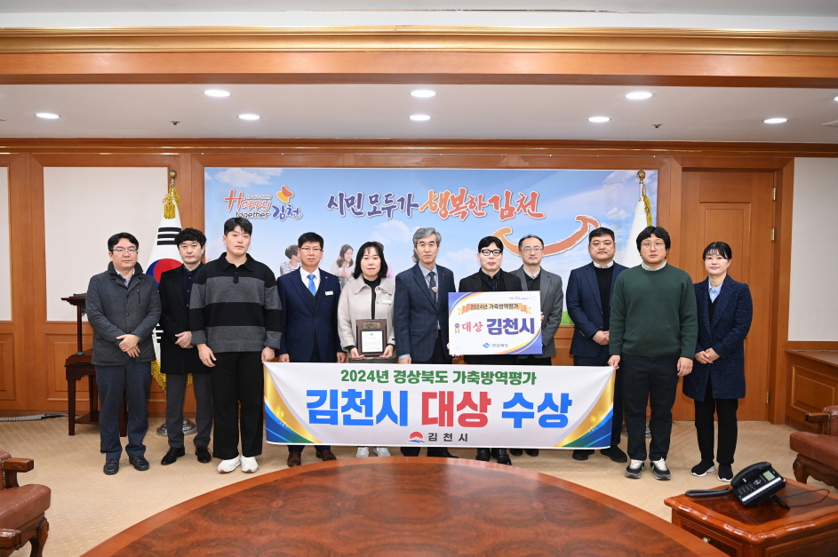 | 김천시는 경상북도가 실시한 「2024년 시군 가축방역평가」에서 대상을 수상했다.