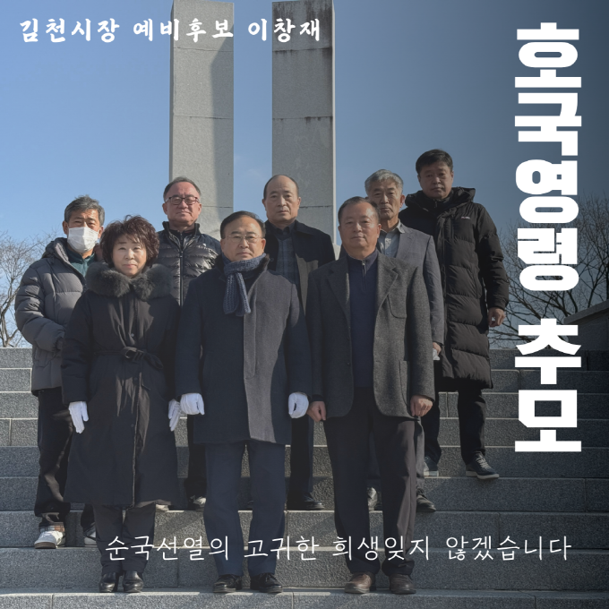 |  | | | ⓒ 김천내일신문 | | 이창재 김천시장 예비후보는 2025년 1월1일 새해 첫날, 지인들과 함께 충혼탑을 방문하여 호국영령들의 숭고한 희생을 기리고 추모의 시간을 가졌다.