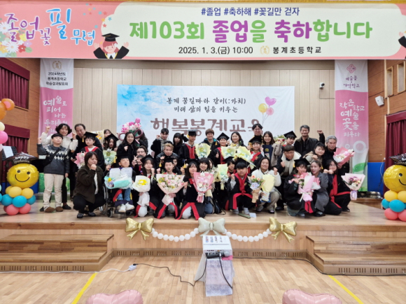 오전 10시에 진행된 졸업식에서는 총 14명의 졸업생이 학업을 마치고 새로운 도약을 준비하는 뜻깊은 시간을 가졌다. 졸업생들은 봉계초등학교 103회 졸업생으로서, 가족과 교직원, 내빈들의 축하 속에 졸업장을 수여받으며 졸업의 기쁨과 아쉬움을 함께 나눴다.